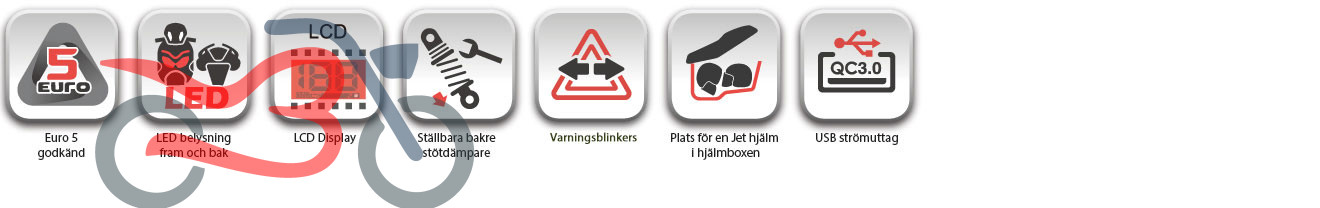 Jet 4 är en av de klassiska SYM-modellerna.Euro 5 modellen är uppgraderad med ny ram för en bättre körupplevelse.