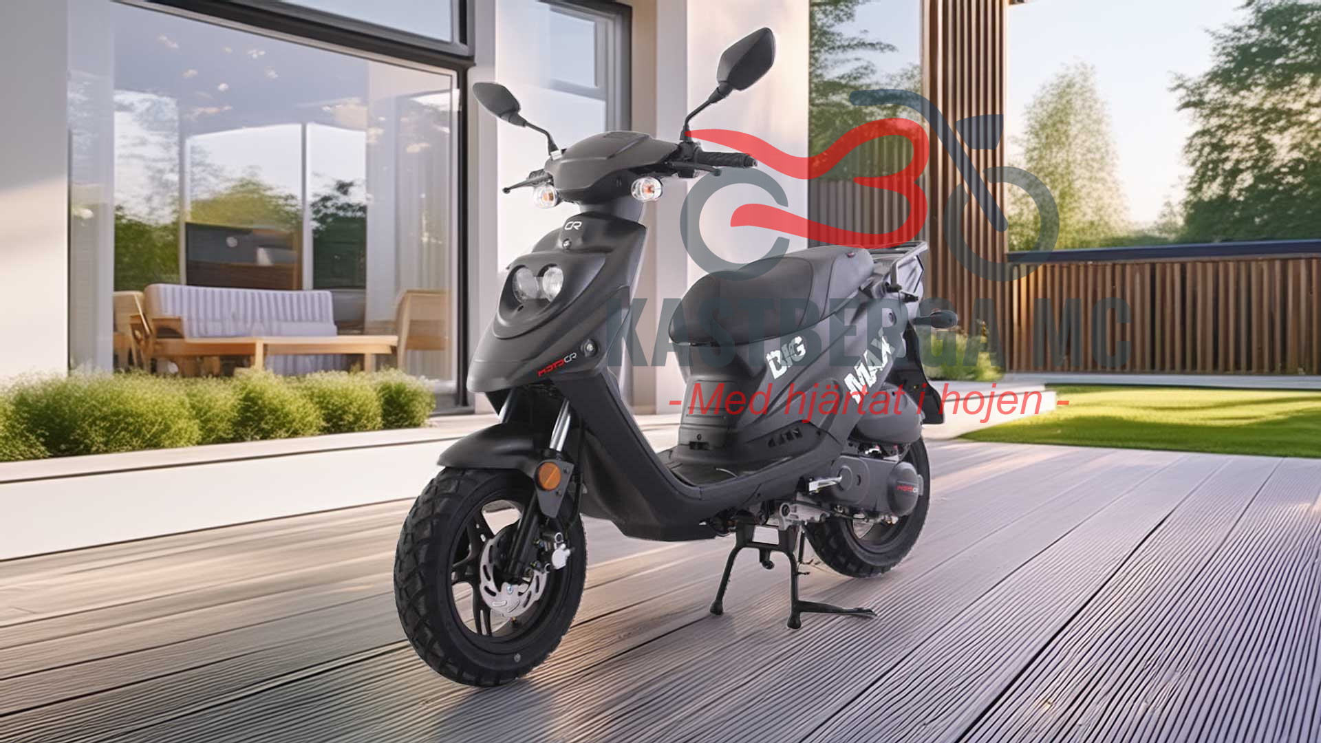 BIG MAX är en kultmoped som är designad för att kunna användas nästan över allt och året runt, det är en riktig Cross Country på 2 hjul.Sommar som vinter, i ur och skur, på grus och asfalt kämpar den på. Med sina grova 12-tums hjul och sin robusta konstruktion har den här modellen rullat på de svenska vägarna i över 15 år. Big Maxen är en kultmoped, den finns både som 25 km och 45 km modell.
