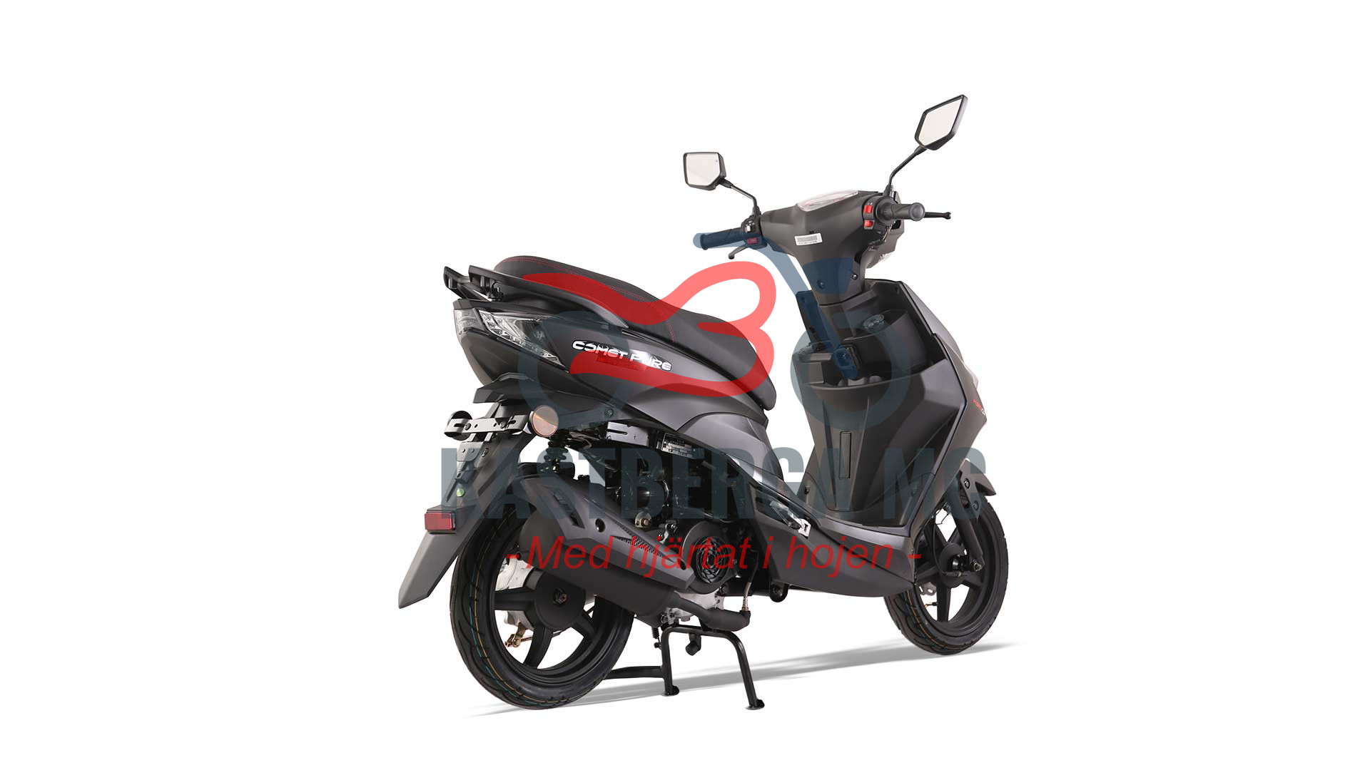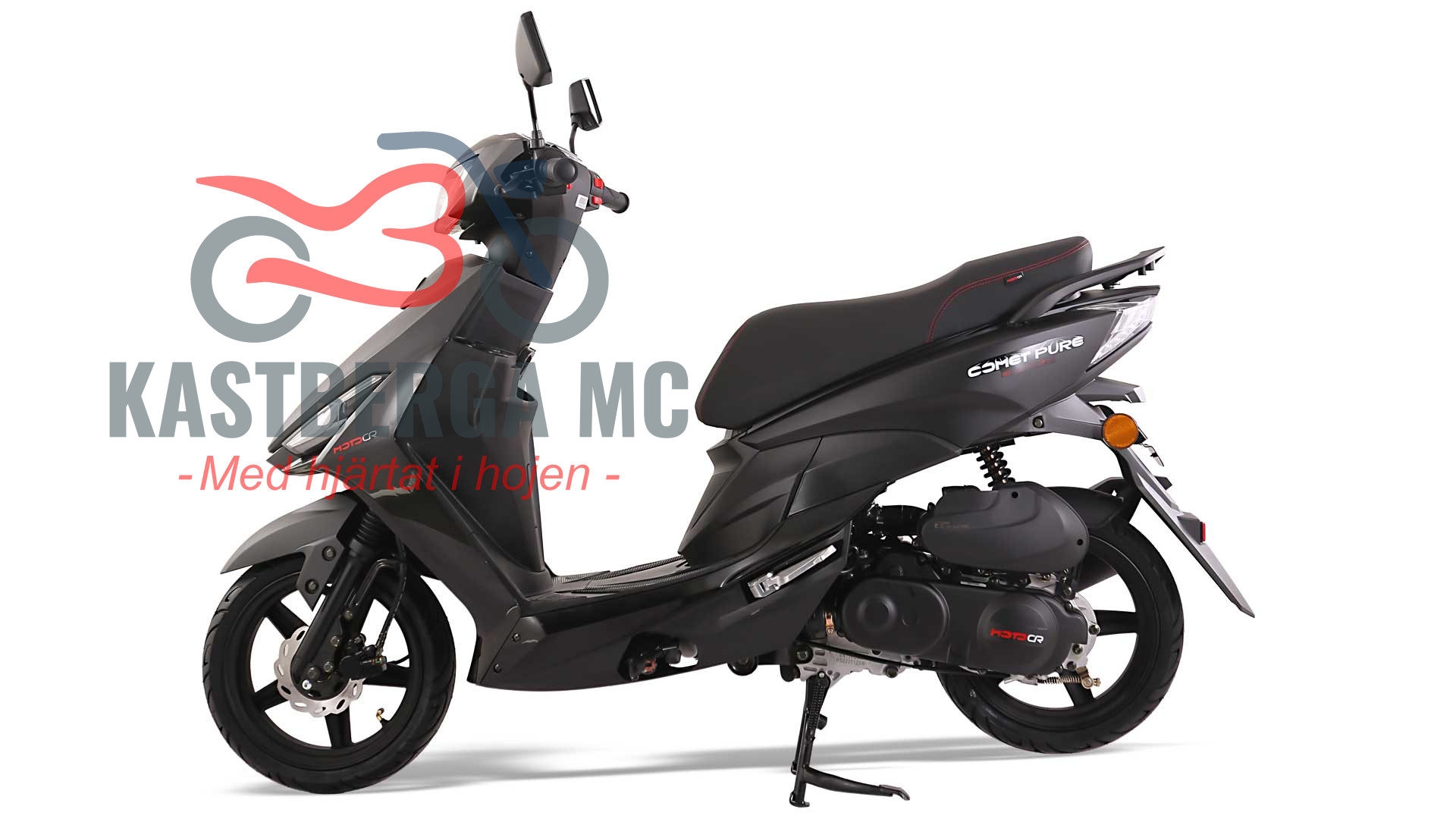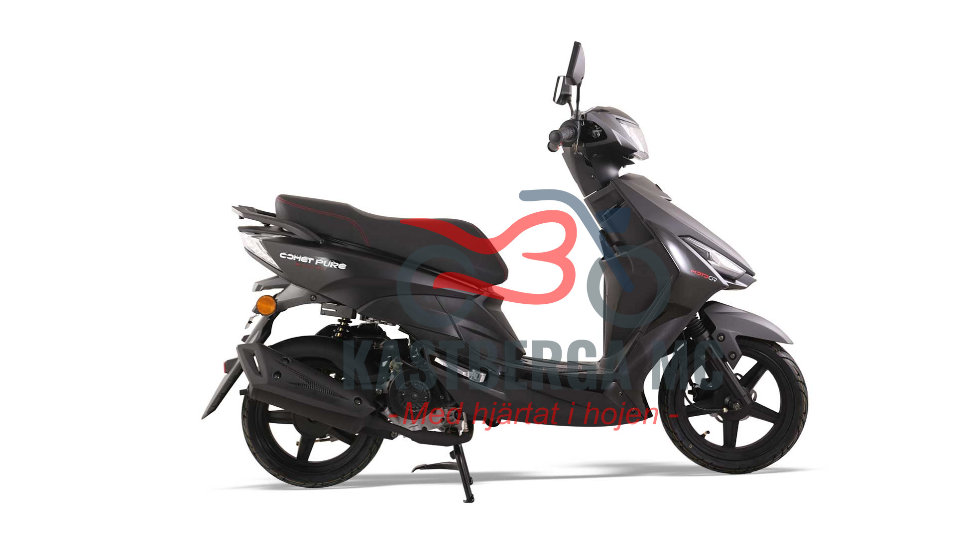 COMET PURE MATTSVARTMotoCR's prismedvetna ingångsmodell Comet är en flexibel sportskoter till bästa priset, med en tuff design! Detta är en mellanstor moped och passar lika bra för tjejer som killar, som är extra smidig och lätthanterlig ute i trafiken. Behöver du ha extra lastutrymme så kan du köpa till pakethållare med en snygg Toppbox bak på mopeden till ett lågt pris. Motorn har senaste tekniken med bränsleinsprutning som är mycket billig i drift med hög tillförlitlighet. Comet är en smidig unisex sportskoter med stora 12” hjul som är lättkörd även på sämre vägar. Detta är vår billigaste modell, men kvaliteten är lika hög som övriga modeller med samma trygghet med hela 2 års Garanti.